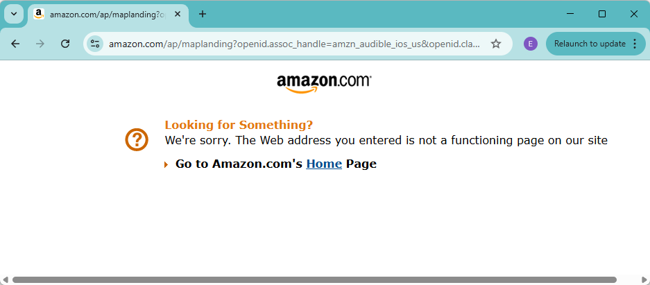iv) Open your web browser, paste the copied URL into the address bar and press “Enter”. Log in using your Audible account credentials. You will then see a page similar to the example below.