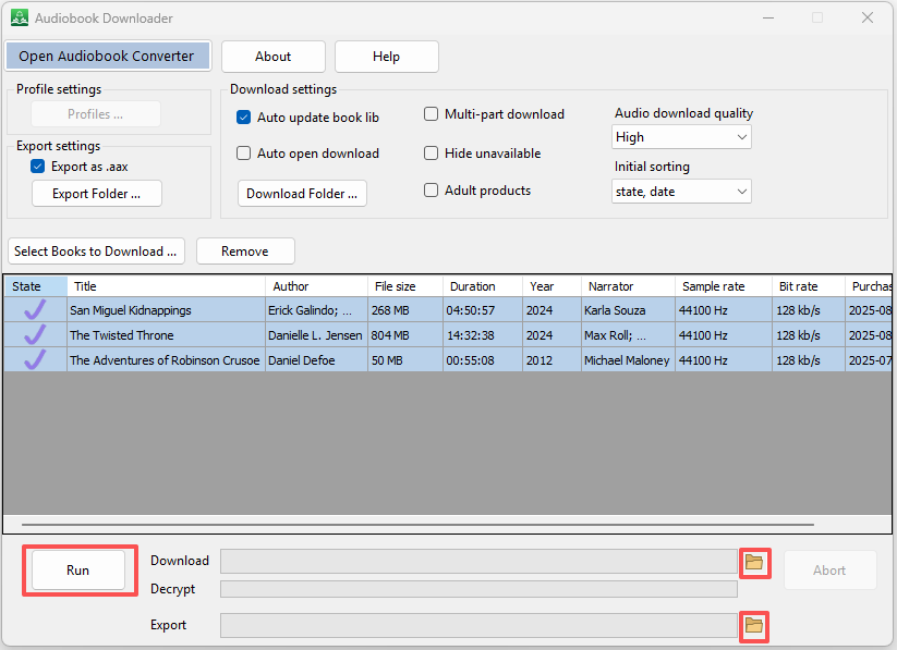 i) Click the “Select Books to Download” button to open your audiobook library.